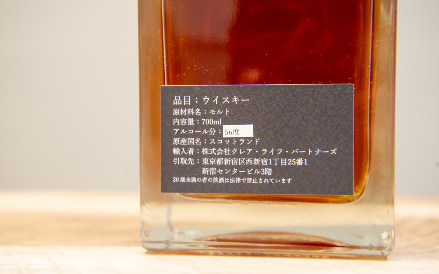 今回のオリジナルボトルはウイスキーボトルとしては珍しい四角形のボトルに仕上げています。これはBARに飾る際、異なるサイズのボトルと同じ棚に並べた時にも綺麗に見えることからインテリアとしても使うことができるので、あえてウイスキーボトルとしては珍しい角ばった形状に仕上げています。